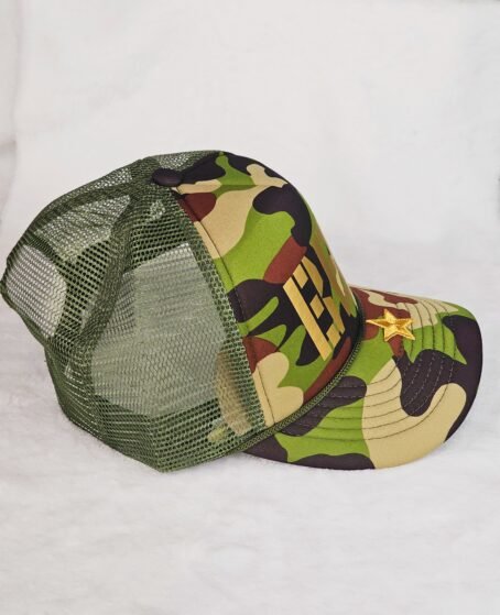 Command attention with our BBG Green Camouflage Trucker Hat (Gold Star Edition). Embrace urban-cool vibes fused with a touch of opulence in this iconic cap. Its striking green camouflage design is accentuated by a gleaming gold star accessory, adding a luxurious edge to any ensemble. Crafted for comfort and style, it’s the essential accessory to elevate your casual look. Stand out from the crowd with the BBG Green Camouflage Trucker Hat (Gold Star Edition) and make a statement wherever you go.