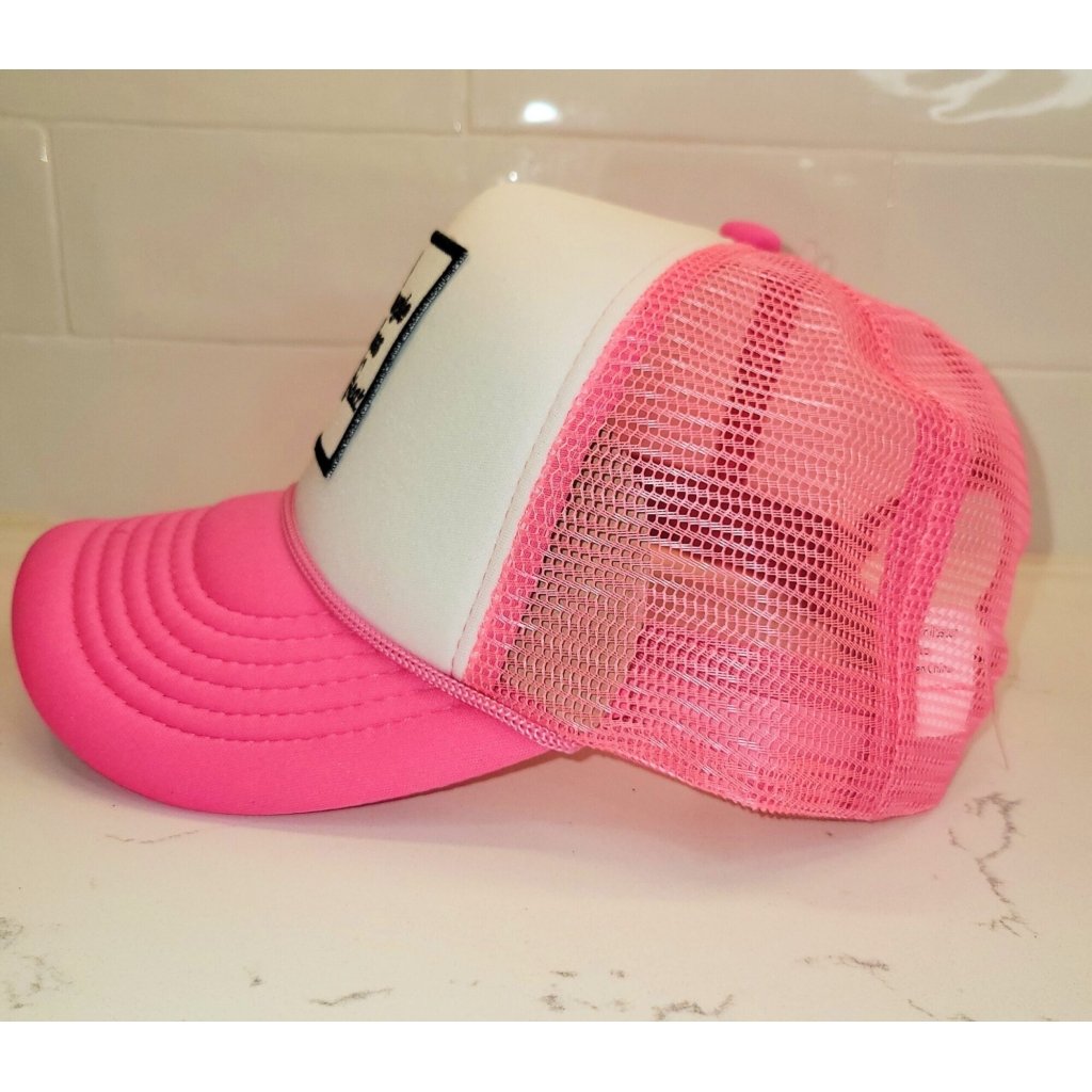 | Trucker Hat Dual Color Images | All Black / White Label, Black / White, Pink / White |