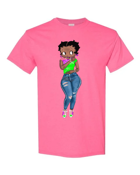 Step into style with our Curvy Black Betty Boop T-Shirt by Bougie Boss Gear. Embrace your curves and showcase your love for this iconic character with a touch of sophistication. Made for fashion-forward individuals who appreciate quality and comfort, this t-shirt is a must-have addition to your wardrobe. Elevate your look effortlessly with this statement piece that exudes charm and personality.