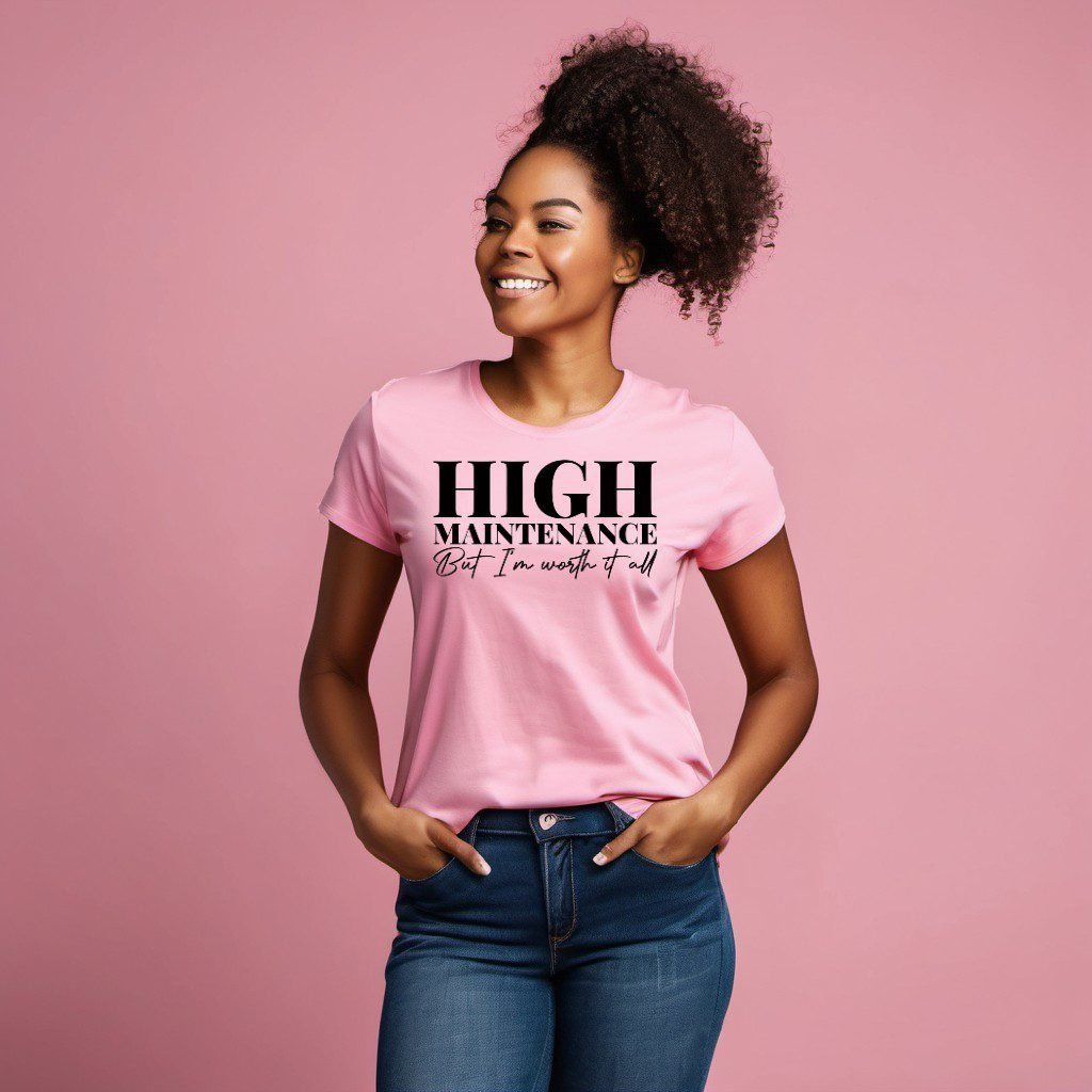 Indulge in luxury with our High Maintenance T-Shirt from Bougie Boss Gear. Boss Up with this premium tee that exudes sophistication and glamour. Crafted with the finest materials, it’s a must-have for fashion-forward individuals who appreciate the finer things in life. Make a statement and show the world your exquisite taste with this one-of-a-kind Tee.