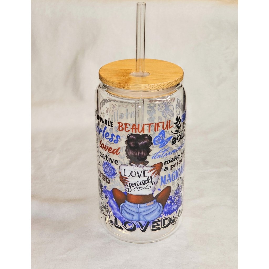 The “Love Yourself” Glass Tumbler is a stylish and empowering addition to your daily routine. This sleek glass tumbler features affirmations like “Love Yourself,” “You Are Enough,” and “Embrace Your Journey,” encircling its durable, transparent surface. Perfect for hydrating throughout the day or enjoying your favorite beverages, each sip becomes a reminder to prioritize self-care and positivity.
