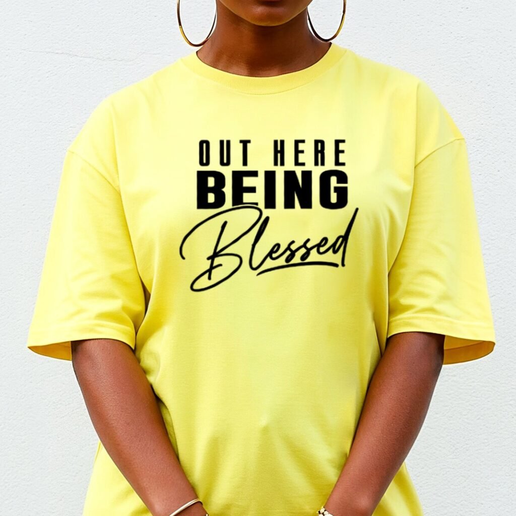 Effortlessly chic, this Out Here Being Blessed T-shirt combines modern style with a message of gratitude. Designed for the woman who embraces faith and fashion, it’s a timeless piece that radiates confidence and grace.