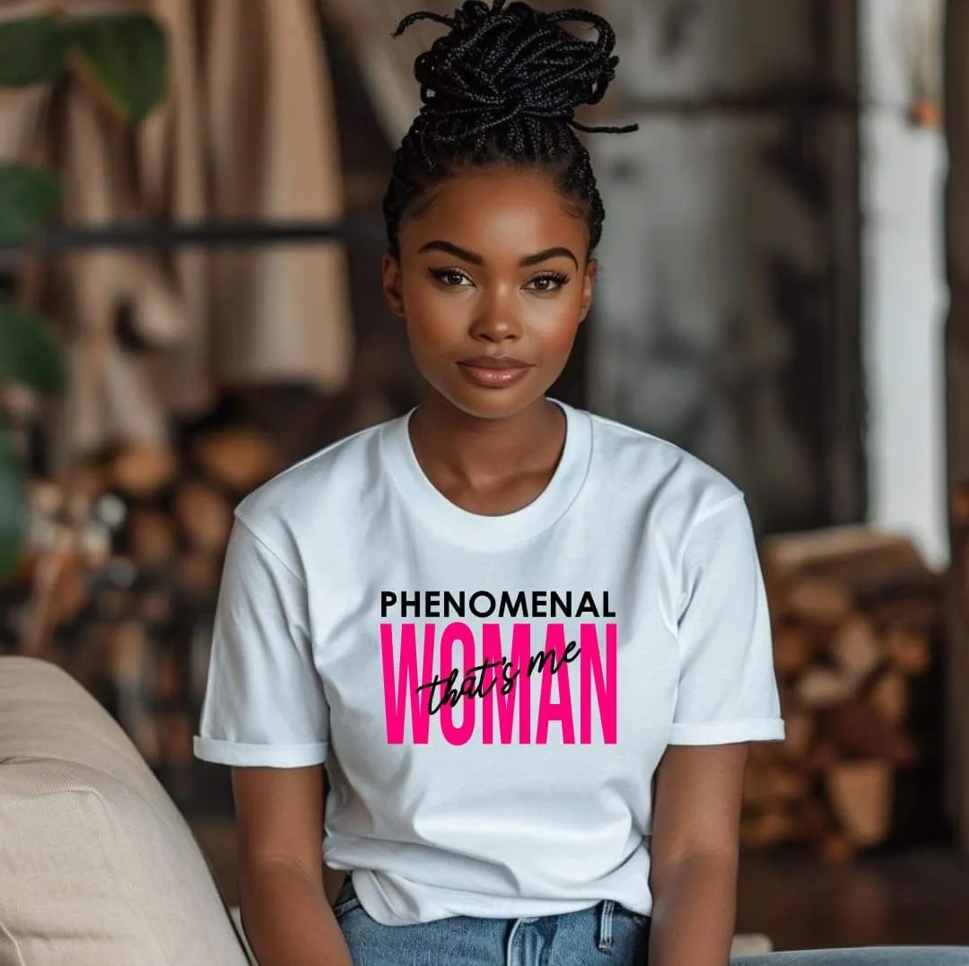 Celebrate your strength and confidence with our “Phenomenal Woman, That’s Me” T-shirt. Featuring the word “Woman” in a vibrant hot pink, this design is a powerful reminder of resilience, self-love, and bold femininity. More than just a tee, it’s a statement of who you are—phenomenal, unstoppable, and proud. ✨